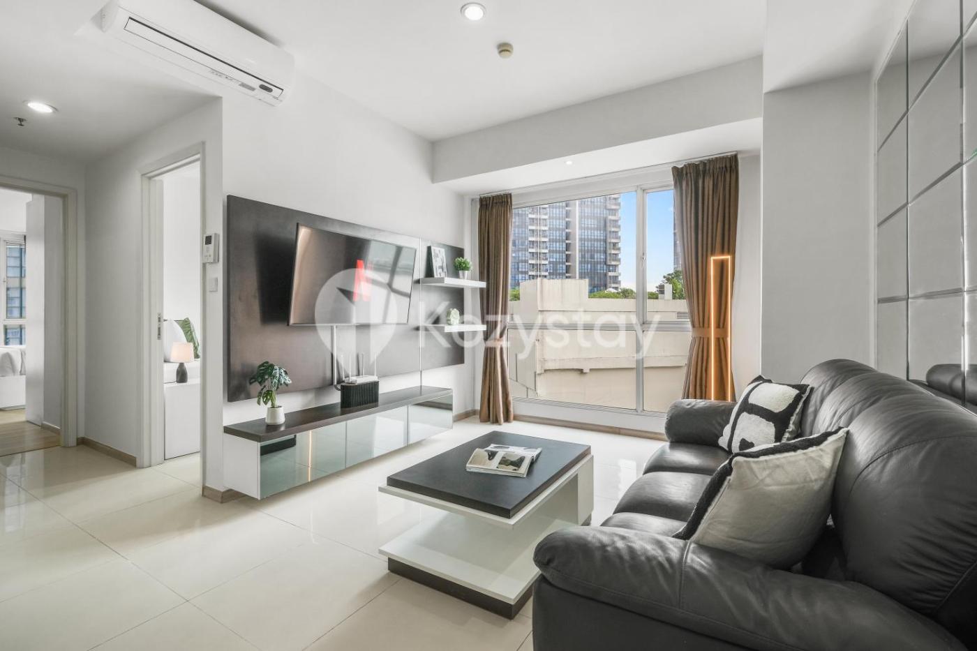 Two-Bedroom Apartment. This spacious apartment features 1 living room, 2 separate bedrooms and 2 bathrooms with a bath and free toiletries. In the well-fitted kitchen, guests will find a stovetop, a refrigerator, kitchenware and a microwave. The air-conditioned apartment features a flat-screen TV with streaming services, a washing machine, a seating area, a dining area as well as city views. The unit has 2 beds.