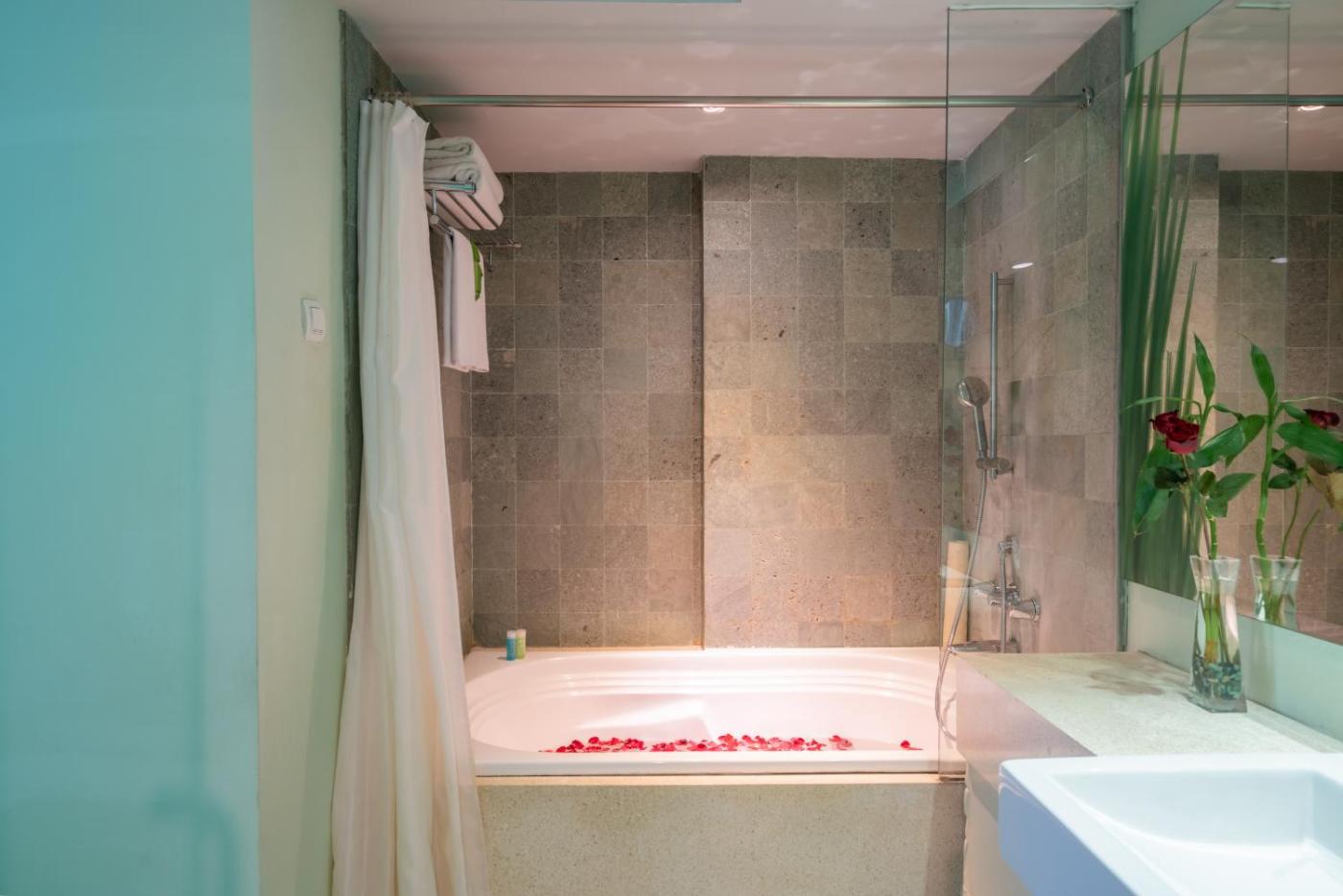 Rooms in EDEN Hotel Kuta Bali are decorated with green tones, giving a fresh feel to each unit. A minibar, electric kettle and a flat-screen satellite TV are among the in-room comforts. En suite bathrooms are well equipped with a hairdryer and slippers.