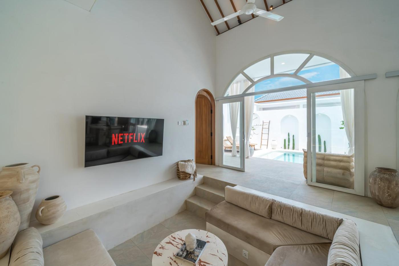 Two-Bedroom Villa. This villa provides a private pool. This spacious villa comprises 1 living room, 2 separate bedrooms and 2 bathrooms with a shower and a hairdryer. The kitchen comes with a stovetop, a refrigerator and a toaster. This villa features air conditioning, a tea and coffee maker, a flat-screen TV and a terrace. The unit offers 2 beds.